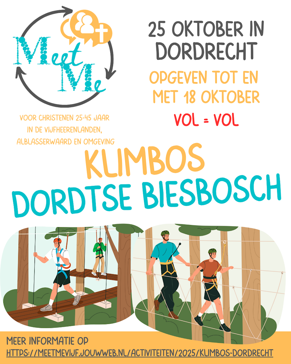 Meet Me is een netwerk, welke in september 2021 is gestart, voor christenen tussen de 25 en 45 jaar in de Vijfheerenlanden, Alblasserwaard en omgeving. Dus voor de gemeenten Vijfheerenlanden, Molenlanden, Lopik, Bunnik, Gorinchem, Montfoort, Utrecht, Houten, IJsselstein, Woerden, Zaltbommel, Buren, Oudewater, Altena, Krimpenerwaard, Culemborg, West Betuwe, Hardinxveld-Giessendam, Woerden, Nieuwegein, Sliedrecht, Dordrecht en ... voor wie dan ook wil komen.