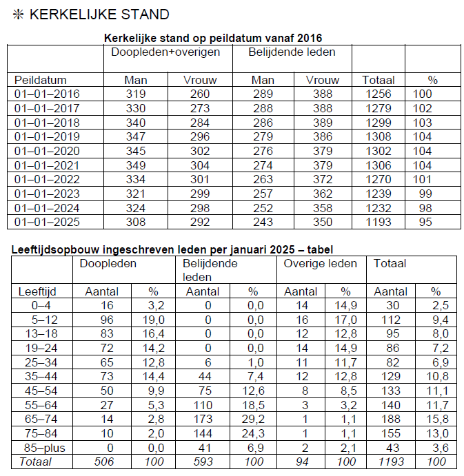 De kerkelijke gemeente telt op 1 januari 2025 1193 leden. ![]() | ||